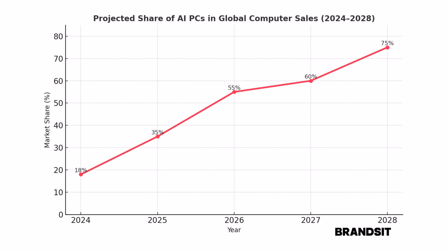 Projected Share of AI PCs in Total PC Sales (2024-2028)
