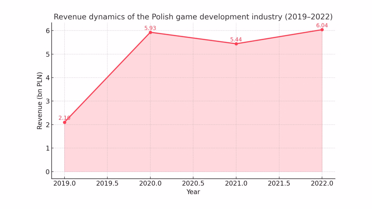The figures best illustrate the dynamics of Polish gamedev. In 2022, the industry generated revenues of €1.286 billion (approximately PLN 6.04 billion), an 11 per cent year-on-year increase.