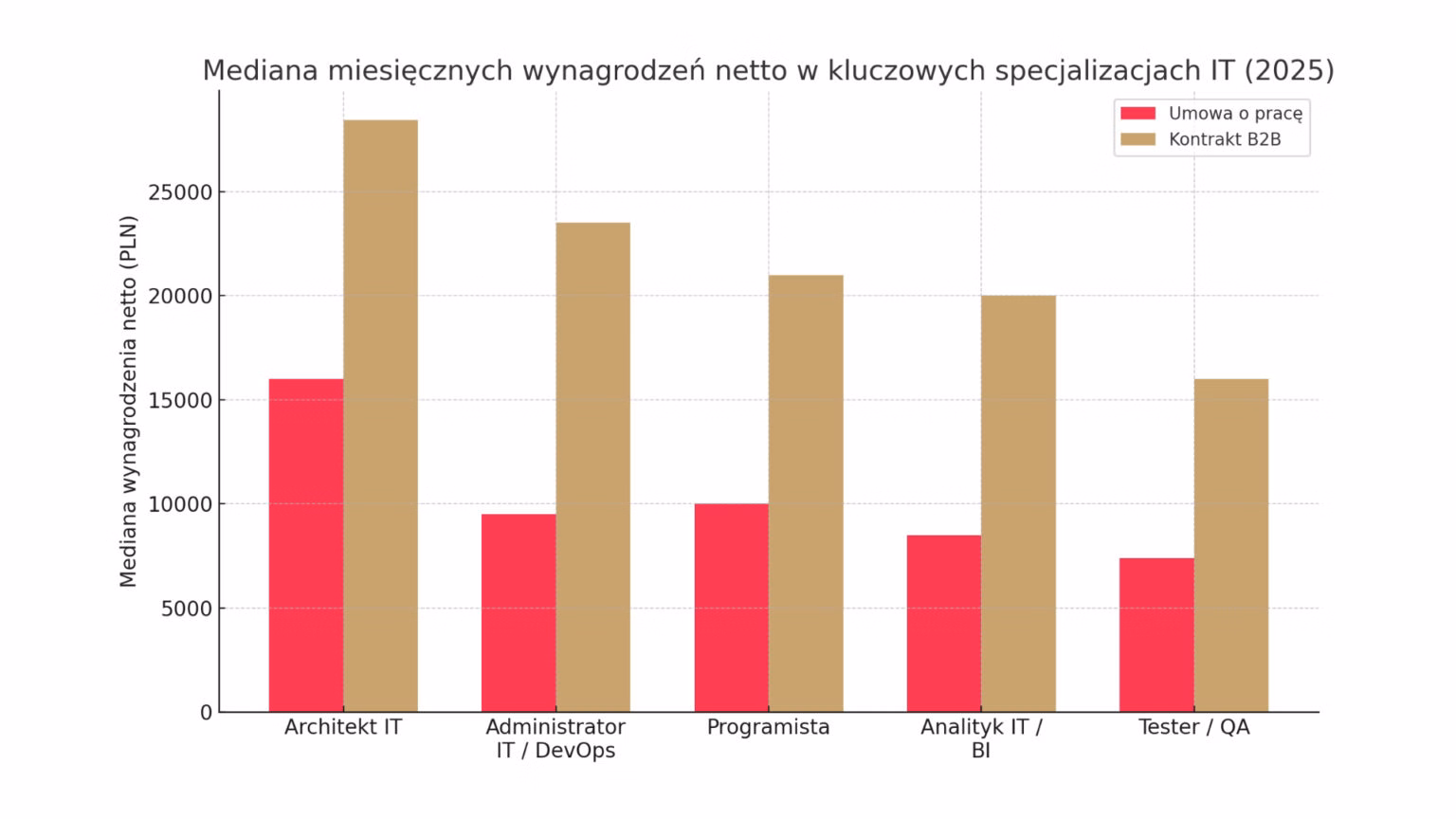 Skalę wyzwania najlepiej obrazuje porównanie płac w IT z resztą gospodarki. Dane Głównego Urzędu Statystycznego pokazują, że w lipcu 2025 roku przeciętne wynagrodzenie w sektorze „Informacja i komunikacja” sięgnęło 14 307 zł brutto.