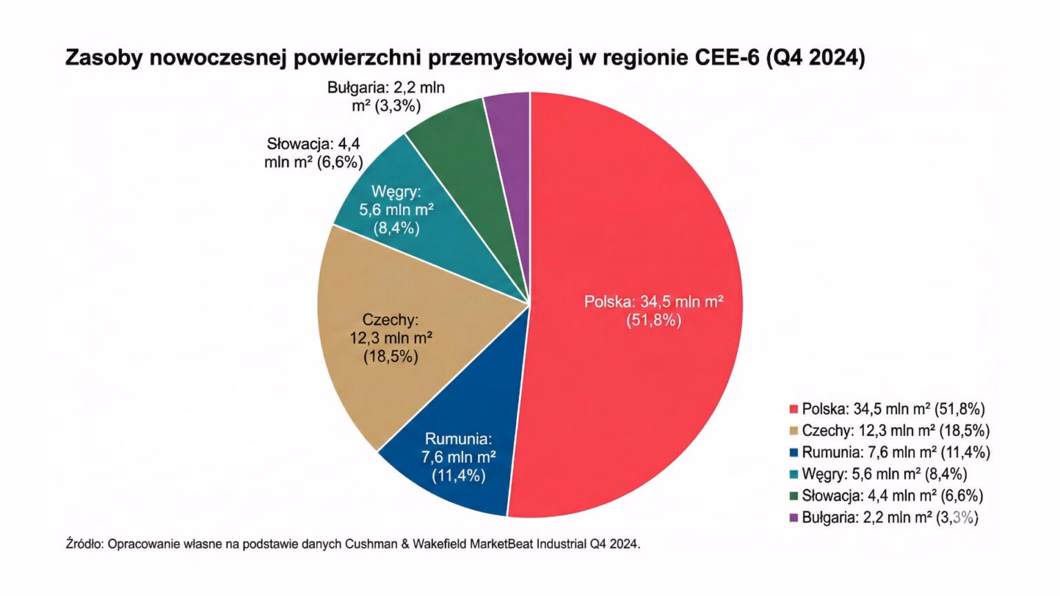 Polska wyrosła na niekwestionowanego lidera logistyki w regionie, a liczby z 2024 roku potwierdzają dominację nad wieloma rynkami zachodnimi. W pierwszej połowie 2024 roku Polska zanotowała najwyższy wolumen wynajmu powierzchni magazynowej w Europie, wyprzedzając nawet rynek niemiecki.